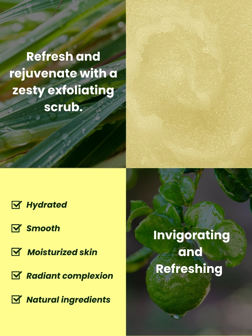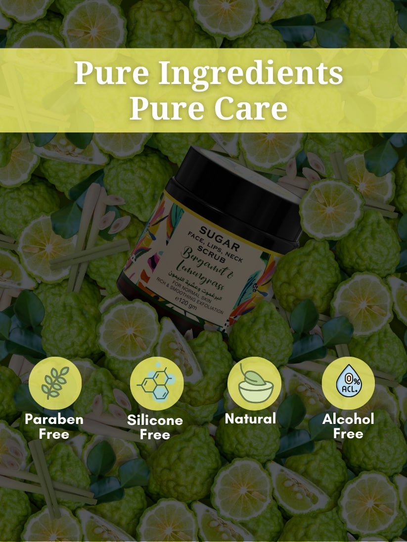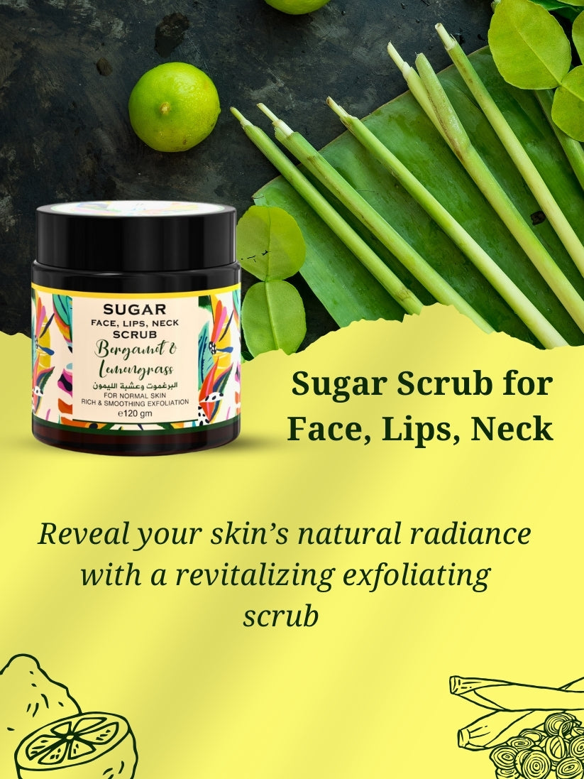Formulated with fine sugar granules, this scrub gently exfoliates dead skin cells and impurities, revealing a radiant and polished complexion. The refreshing bergamot and lemongrass fragrance uplifts your senses, turning your skincare routine into a spa-like retreat.