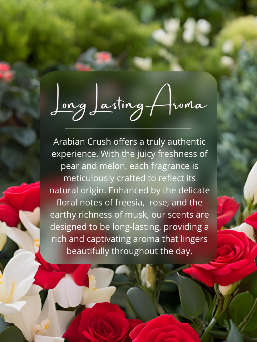 Arabian Crush Concentrated Perfume Oil scent is likely a Fruity Floral Musky with moderate intensity.