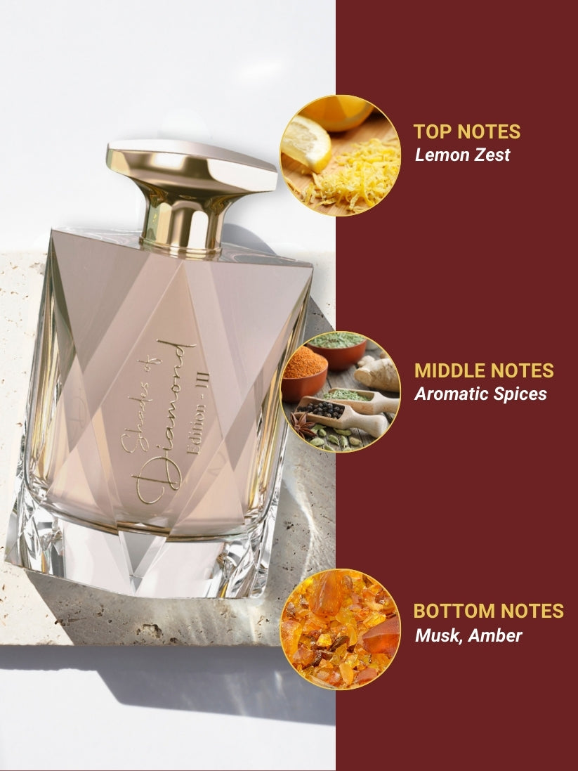 Shades of Diamond Edition III Parfum scent is likely a Spicy Citrus Musky with moderate intensity.