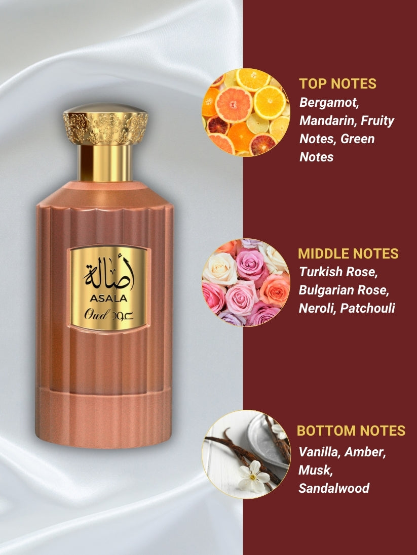 Asala Oud Acqua de Parfum scent is likely a Floral Woody Amber with Moderate Intensity.