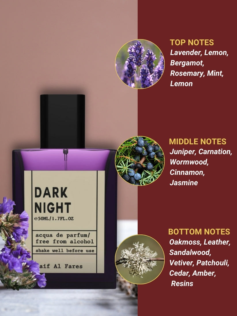 Dark Night Aqua de Parfum scent is likely a Herbal Woody Fresh with moderate intensity.