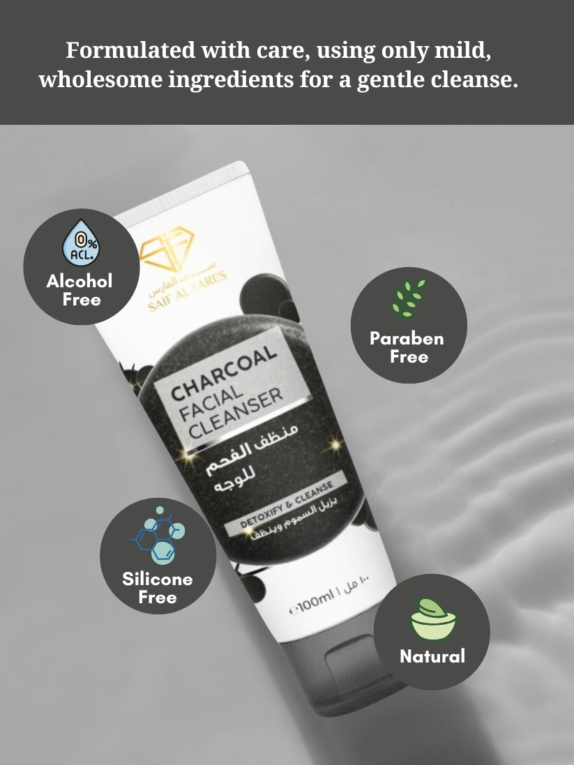 Saif Al Fares Charcoal Facial Cleanser is designed to provide a deep, purifying cleanse. This powerful cleanser utilizes activated charcoal to draw out impurities, excess oil, and toxins, leaving your skin feeling fresh, clean, and balanced.