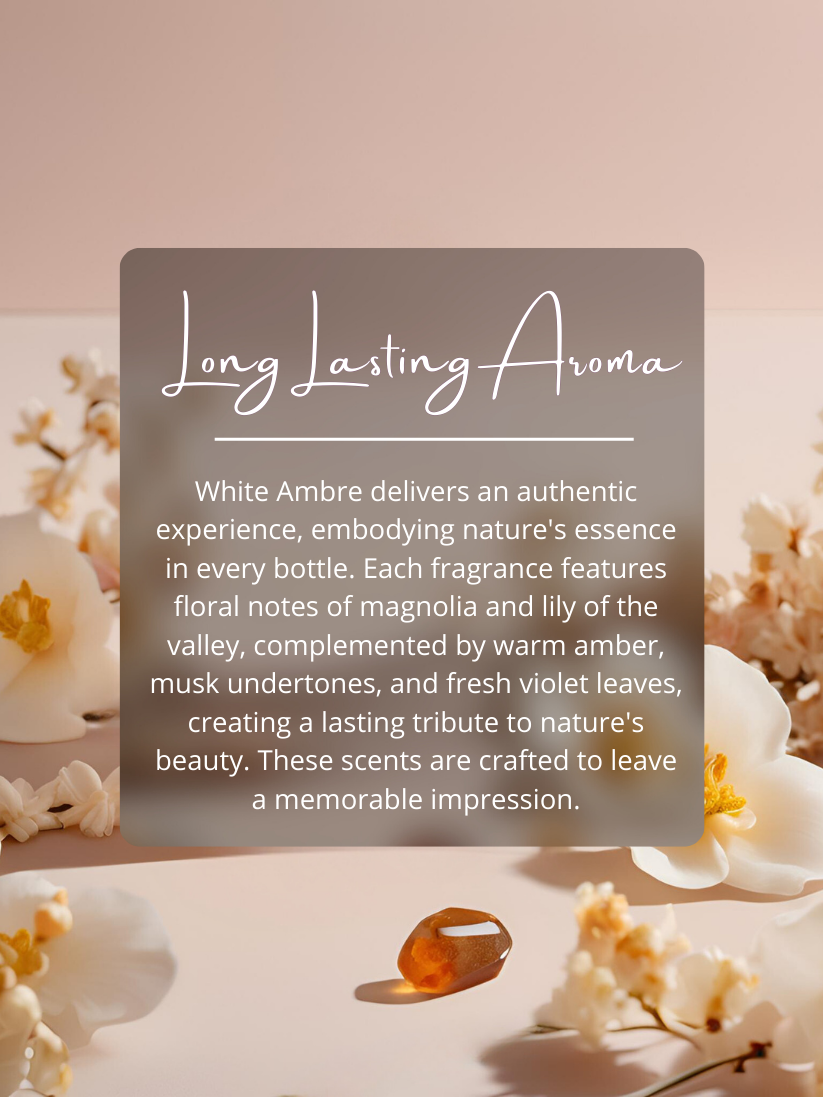 White Ambre Concentrated Perfume Oil scent is likely a Floral Luxurious with moderate intensity.